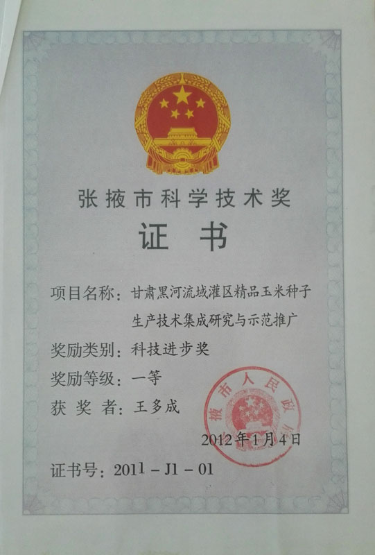 2013年榮獲張掖市科學(xué)技術(shù)二等獎…